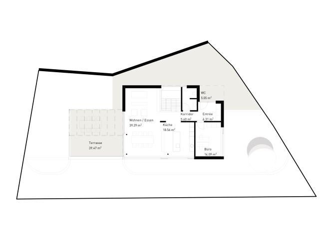 In ruhigem Einfamilienhausquartier gelegen und am Sonnenhang von Gränichen, fügt sich der 2-geschossige Flachdachbau harmonisch in die steile Topologie ein. Der unverbaubare Blick geht nach Südwesten, wobei die grosszügigen Verglasungen die umliegende Landschaft in die Wohnräume und Schlafzimmer bringen. Lichtdurchflutet im Innern, zeigt sich das Gebäude von aussen in moderner, klassischer Architektur. Als Aussenbereich dient eine grossflächige Terrasse in nordwestlicher Ausrichtung. Die Erschliessung des Hauses erfolgt strassenseitig durch einen überdachten Vorbereich, der gleichzeitig als Parkfläche und Eingangsbereich fungiert.