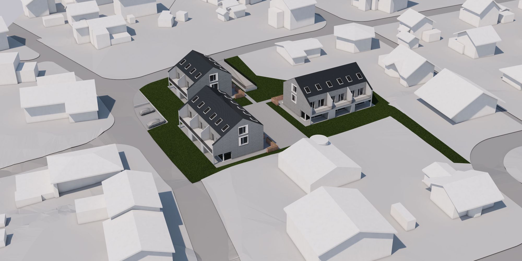 Das von Einfamilien- und Reihenhäusern geprägte Quartier, liegt an ruhiger Lage direkt neben der Landwirtschaftszone. Hier soll eine neue Überbauung mit drei Reihenhäuser und insgesamt 8 Wohneinheiten entstehen. Die Teilhäuser verfügen über ein eigenes Kellergeschoss mit Anbindung an die gemeinsame Einstellhalle, sowie drei Wohngeschosse inkl. Dachgeschoss. Die einzelnen Parteien besitzen einen eigenen Garten und können hier in ihrem Stück Grün das Familienleben und das Leben im Quartier geniessen. Passend zum Name des Wohnquartiers ist die Materialwahl der Gebäude eine Holzverkleidung in dezentem Grau, welche durch moderne Elemente das klassische Steildachhaus in die heutige Zeit transponiert.
