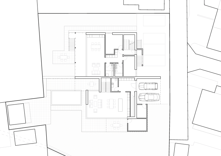 Das Einfamilienhaus überzeugt im Erdgeschoss mit einem grosszügigen Eingangsbereich, von dem aus die Wohnräume zugänglich sind. Diese bieten direkten Zugang zum Garten sowie zum Poolbereich und schaffen so eine harmonische Verbindung zwischen Innen und Aussen. Durch verschiedene überdachte Bereiche wird der Aussenraum zusätzlich aufgewertet. Im Obergeschoss befinden sich drei Zimmer, die sich ein gemeinsames Bad teilen. Ein grosszügiges Schlafzimmer, eine separate Ankleide, ein eigenes Bad und eine Dachterrasse bieten den Bewohnern im Attika einen exklusiven Rückzugsort.