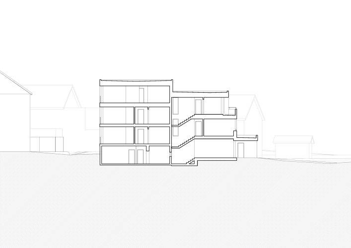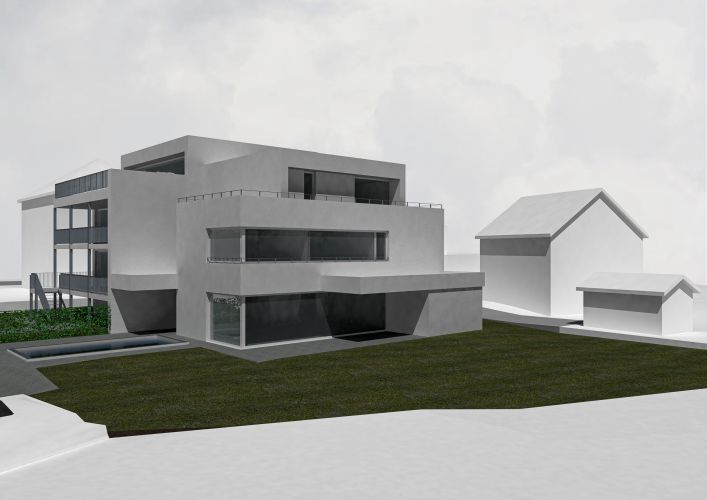 Im Herzen von Schöftland entsteht ein architektonisch anspruchsvoller Ersatzneubau, bestehend aus einem Mehrfamilienhaus, das auf dem bestehenden Untergeschoss aufbaut, sowie einem südlich gelegenen, additiv angeordneten Einfamilienhaus. Die beiden Gebäude werden durch separate Gartenbereiche voneinander abgegrenzt und über einen bewusst platzierten Geschossversatz voneinander entkoppelt.