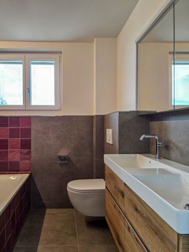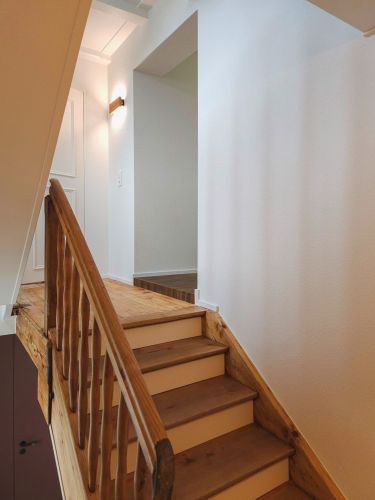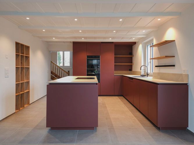 Das 5.5-Zimmer-EFH in Beinwil am See liegt in leichter Hanglage oberhalb des Dorfkerns mit Blick auf den See. Der Bestand von 1921 wurde respektvoll umgebaut und in seiner Erscheinung weitgehend bewahrt. Durch gezielte Eingriffe wurde das Haus an heutige Wohnbedürfnisse angepasst. Neue Bodenbeläge sowie erneuerte Heiz- und Elektroinstallationen werten die Substanz auf. Unter anderem wurde die Küche zu einer offenen Wohnküche erweitert, die Bäder erneuert und das Dachgeschoss ausgebaut. Der Umbau verbindet den Erhalt des Bestehenden mit einer zeitgemässen Weiterentwicklung.